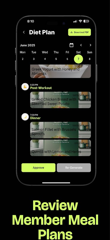 De gepatenteerde AI-engine van NutriChef stelt een gepersonaliseerd maaltijdplan voor elke klant samen. Controleer, keur goed of genereer het opnieuw op basis van voorkeuren en resultaten. ✅ Calorie- en macronauwkeurigheid