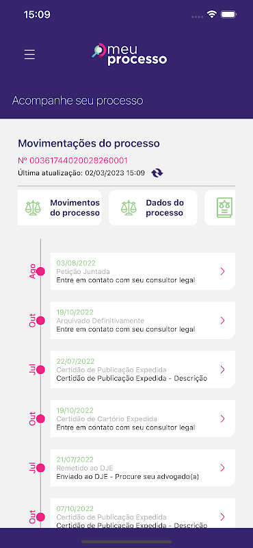 Met de applicatie "O Meu Processo" kunt u de voortgang van uw zaak bij het Gerechtshof van São Paulo volgen. Voor de advocaat meer gemoedsrust en zekerheid dat zijn cliënt alle belangrijke veranderingen in het proces kan volgen en voor de cliënt een vriendelijk platform en zonder de technische termen van het juridische gebied.