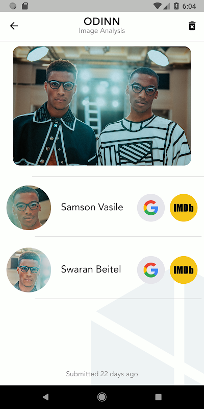 Odinn maakt gebruik van state-of-the-art gezichtsherkenning technologie om een foto die je hebt gemaakt met een hele database van bekende beroemde mensen te vergelijken. Het kan meerdere mensen te identificeren in hetzelfde beeld en bieden een aantal snelle links om meer over ze te lezen, ook!