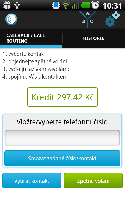 Oficiální aplikace pro zpětné volání přes operátora odorik.cz