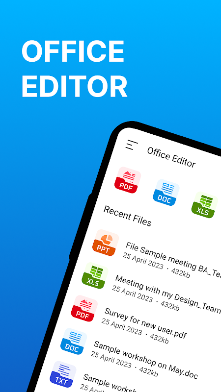 📝Office-editor: Word Excel PPT is een applicatie waarmee u een bestandsviewer, tekstverwerker, kantooreditor en verschillende kantoordocumenten op uw mobiele apparaat kunt beheren. Trouwens, Office Editor is ook een alles-in-één kantoorpakket dat Word-documenten, PDF, Excel, enz. integreert. Met deze app kun je eenvoudig bestanden zoals Word-documenten, Excel-spreadsheets en powerpoint-presentaties online openen en lezen - kantoor online altijd en overal zonder internet.