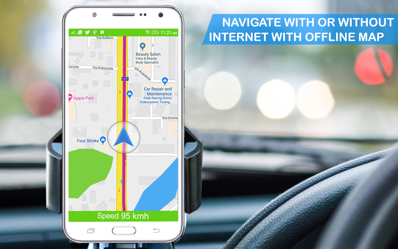 Navigatie-app die het beste van de offline en online functies combineert om de ultieme navigatie-ervaring te creëren. Compacte kaarten van meer dan 200 landen zijn speciaal geoptimaliseerd om minder ruimte op uw telefoon in te nemen. Volg nauwkeurige gesproken aanwijzingen, vermijd files en neem snelheidslimieten. Offline Map Navigation App is alles in één oplossing voor al uw locatie- en navigatieproblemen en het goede aan deze app is dat deze volledig gratis is en zelfs offline werkt.