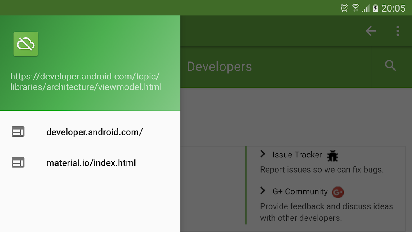 - Pages like developer.android.com/reference are unusable in the Chrome browser as they can't be scrolled horizontally yet they work fine in Offliner