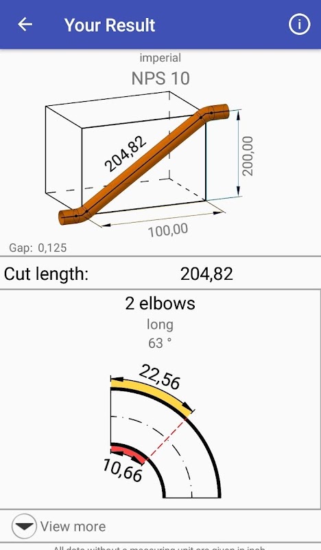 Alle nominale diameters en fittingen zijn aanwezig, dus het is voor u heel gemakkelijk om complexe berekeningen snel op te lossen. Zelfs als je valse informatie invoert, kun je geen verkeerde oplossingen krijgen. Op deze manier kunt u materiaal, tijd en stress besparen. De app is jouw hulp in een hectische en drukke werkdag.