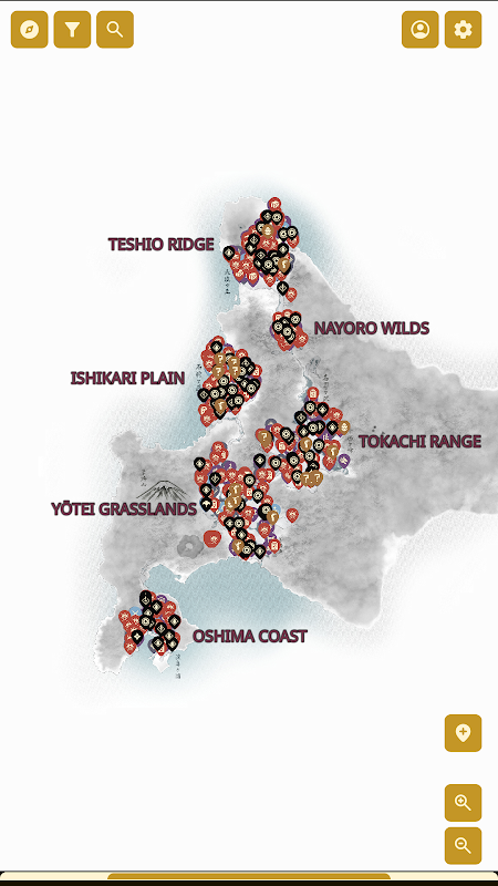 -- Krachtig filtersysteem: De app onthoudt al je instellingen. Focus op één categorie en alle andere verdwijnen automatisch van de kaart. Maak en bewaar je eigen filterpresets (bijvoorbeeld "zoek naar puzzeldozen" of "zoek naar Lord Saito-missieven") en wissel er met één druk op de knop tussen. -- Interactiviteit en gemak: Markeer locaties als "gevonden" en de app werkt je voortgang automatisch bij in de bijgehouden categorieën. Wil je een specifiek gebied opruimen? Selecteer een regio uit de lijst en de kaart toont alleen markeringen binnen de grenzen ervan.