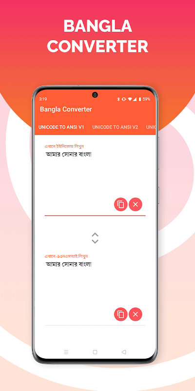 Converteer tekst tussen Unicode en ANSI met een nauwkeurigheid van 100% en zonder bugs. Deze app helpt ook bij het invoeren van veelgebruikte Bangla-symbolen die we niet gemakkelijk krijgen met een gewoon toetsenbord. U kunt ook onze websites bezoeken om lettertypen te downloaden, bezoek onze facebookpagina en u hebt toegang tot onze videozelfstudies met de Okkhor52 Tools-app.