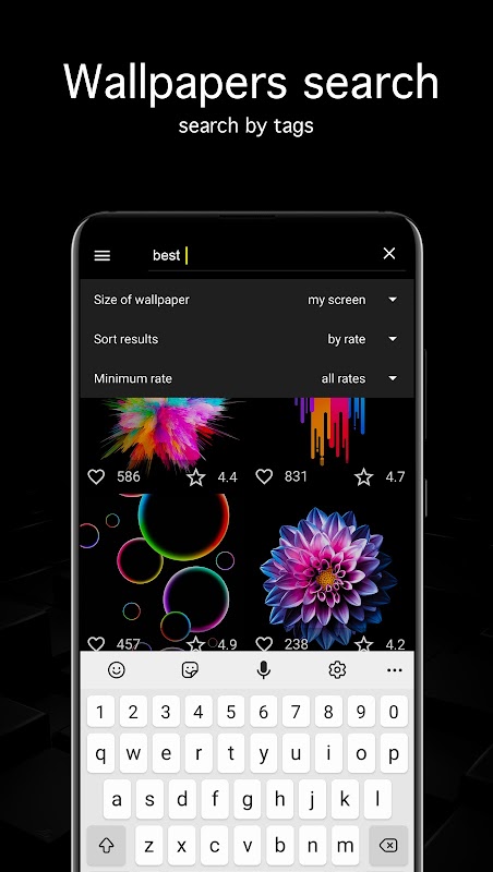 Speciaal geselecteerde achtergronden met donkere achtergronden die er geweldig uitzien op OLED-schermen. Achtergronden worden voor elk apparaat afzonderlijk geselecteerd. U krijgt alleen die achtergronden die perfect zijn voor uw telefoon of tablet.