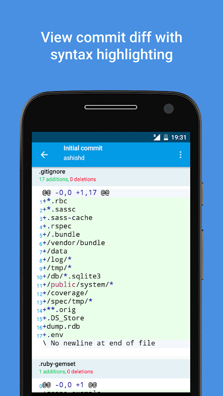 • View pull request details including list of files, commits, comments and file diff (with syntax highlighting)