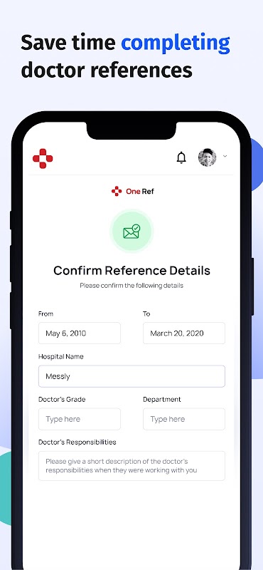 One Ref vereenvoudigt referentiebeheer, waardoor het gestroomlijnd, veilig en efficiënt wordt om medische referenties in te vullen. De app is gemaakt door Messly, de toonaangevende app die artsen helpt bij het vinden van plaatsvervangend werk, wordt vertrouwd door meer dan 40.000 artsen en heeft een beoordeling van 4,9* op Trustpilot.