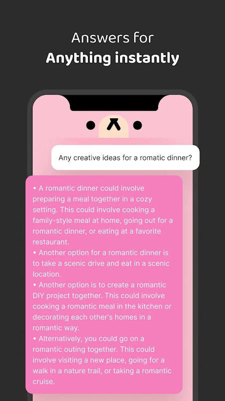 With this app, you can chat with our intelligent bot and get instant, impressive answers to all of your questions. Whether you need help with a specific problem, want to learn more about a certain topic, or just want to have a conversation, our chatbot has you covered.