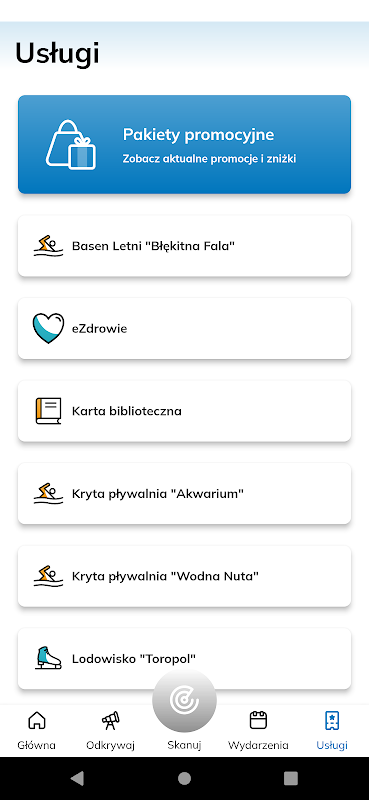• Aankoop van kaartjes voor actieve recreatie: het zomerzwembad "Blue Wave", de overdekte zwembaden "Akwarium" en "Wodna Nuta", de ijsbaan "Toropol" en de ZOO.