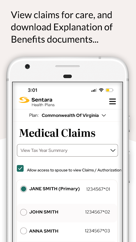 Sentara Health Plans MOBIELE APP-FUNCTIES