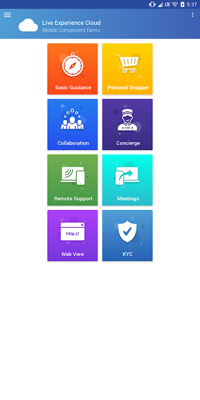 Live Experience biedt een Android SDK waarmee u digitale communicatiekanalen (met name video-interacties via camera en schermdeling) rechtstreeks in elke mobiele app kunt toevoegen.