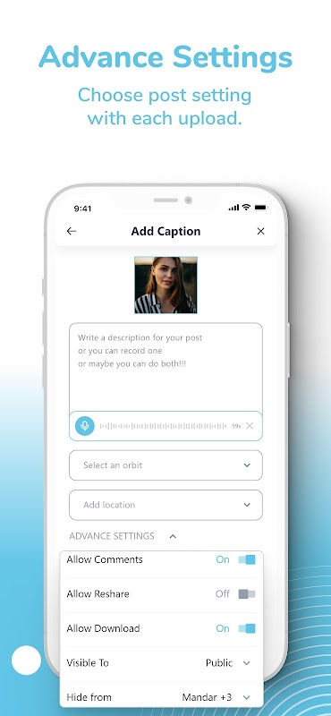We know you love posting and writing beautiful captions but on Orbiting for the 1st time you can record a post caption in your own beautiful voice.