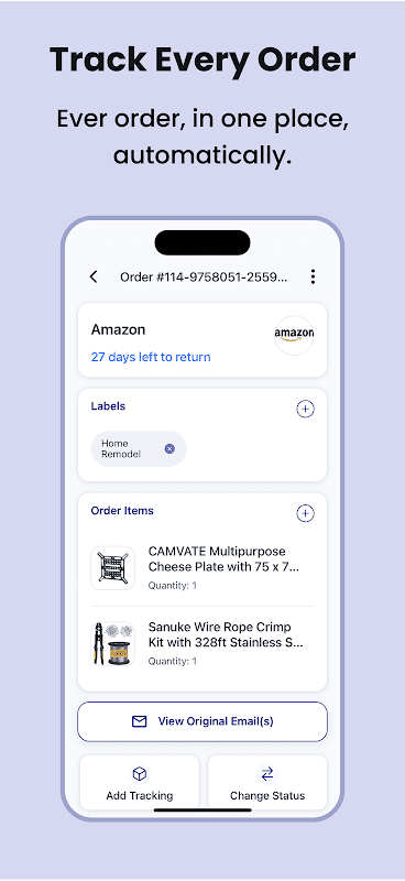 Je inbox is niet gebouwd om alles wat je koopt bij te houden. Ordelijk wel. Volg, beheer en retourneer bestellingen - alles op één plek.