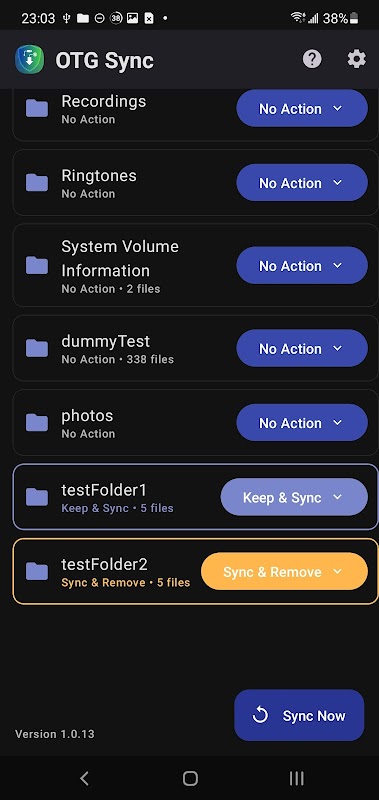 Met OTG Sync is het eenvoudig om bestanden te back-uppen en over te zetten tussen je Android-apparaat en externe opslagmedia, zoals USB OTG-drives en SD-kaarten. Dankzij de overzichtelijke en eenvoudige interface kun je snel mappen selecteren om te synchroniseren. Je kunt ervoor kiezen om je bestanden te kopiëren of ruimte te besparen door ze volledig te verplaatsen. Je krijgt gedetailleerde logboeken van elke synchronisatiebewerking, zodat je altijd op de hoogte bent van de status van je bestanden. Download OTG Sync vandaag nog en neem de controle over je back-ups.