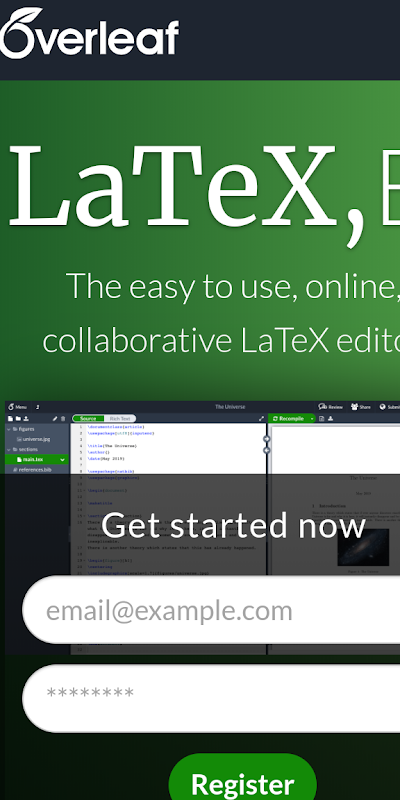Overleaf is a free, collaborative LaTeX Editor for your Android device. It allows you to create and manage LaTeX projects directly on your Android device and generate a PDF by using Overleaf (Online LaTeX ).