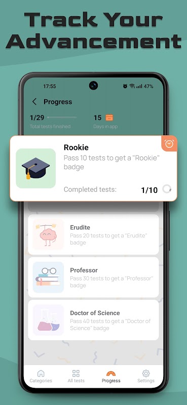 U kunt uw voortgang controleren en hoeveel tests u heeft gehaald.