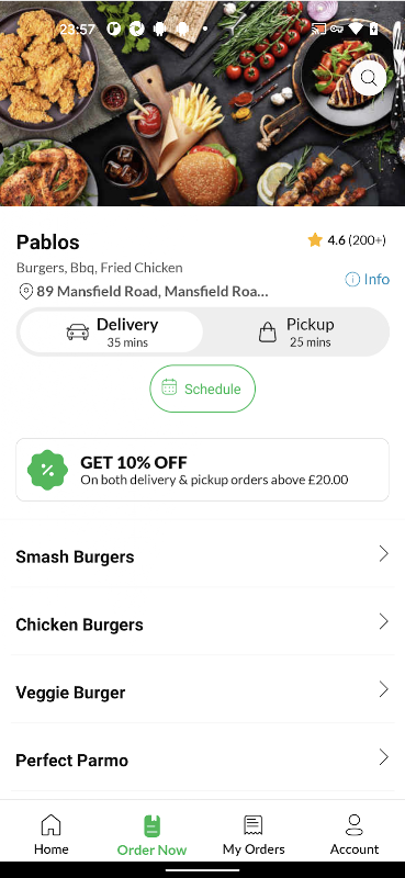 Zin in een voorproefje van Mansfield Road? Pablos is uw lokale plek voor een heerlijke maaltijd. Sla de wachtrij over en geniet van het gemak van direct bestellen via onze app. Met een gebruiksvriendelijke interface kunt u moeiteloos door het menu bladeren, uw winkelmandje vullen en afrekenen. Of u nu de voorkeur geeft aan contante bezorging of kaartbetaling, bij ons bent u aan het juiste adres. Bovendien kunt u uw bestelling in realtime volgen, van onze keuken tot aan uw deur.
