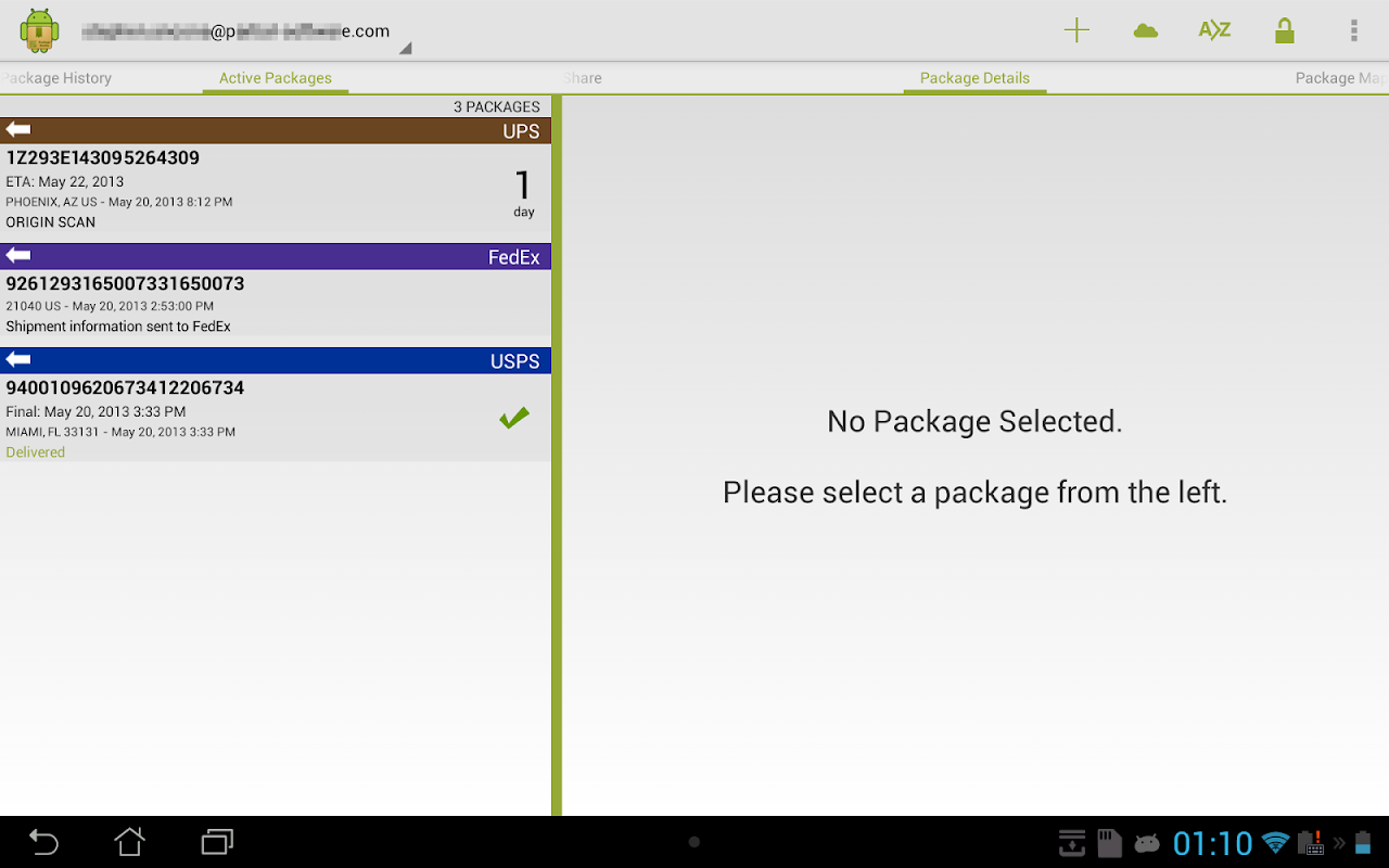 Met Package Buddy, kunt u een gedetailleerde geschiedenis en een kaart van de vooruitgang van uw pakketten (mate van detail hangt af van drager) te zien.