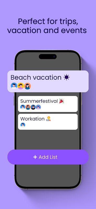 Voeg eenvoudig privéitems voor jezelf en gedeelde items voor de groep toe. Coördineer essentiële zaken zoals snacks, kampeerspullen, toiletartikelen en meer.