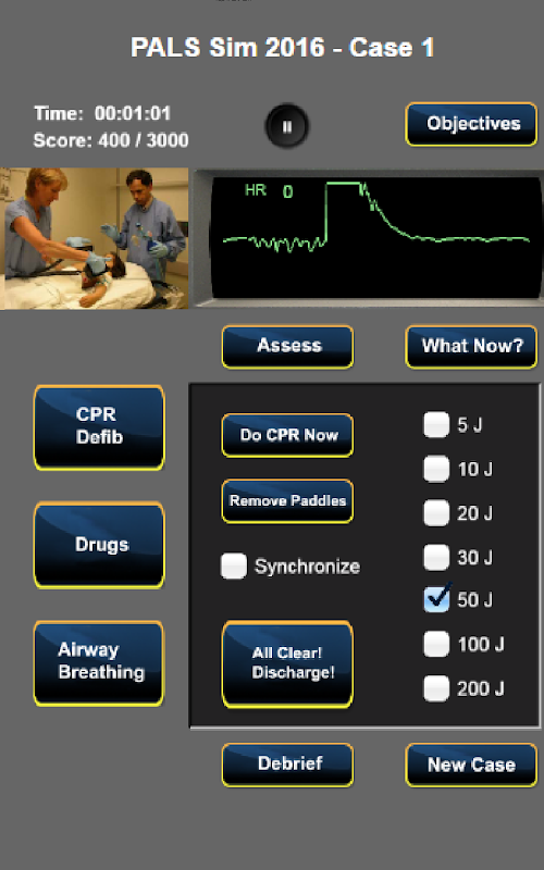 De 8 casus-scenario's in deze app zijn geschreven door Kathleen Ventre. De eerste vier gevallen behandelen ventriculaire fibrillatie. De volgende twee zijn bradycardie en de laatste twee gevallen hebben betrekking op supraventriculaire tachycardie. Het eerste geval is gratis. De overige 7 gevallen zijn beschikbaar voor in-app-aankopen.