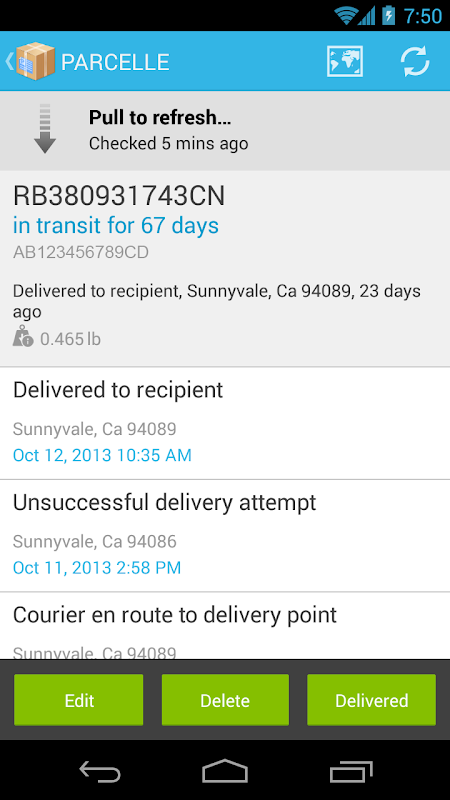 Parcelle is a worldwide package tracking application. It can track packages all over the world across different countries automatically and notify you about any changes in their status.