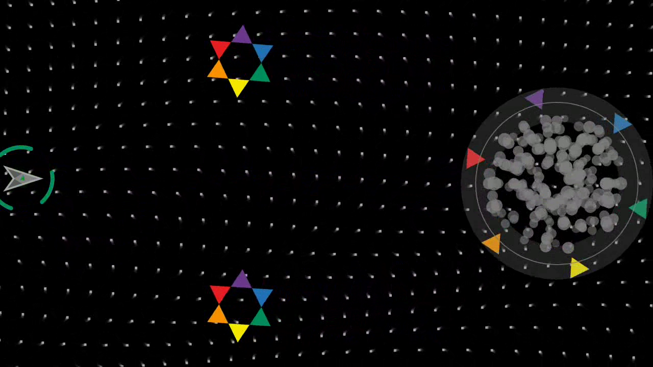 - triangles and pentacles are offensive, when bouncing, shots are emitted from their vertices.