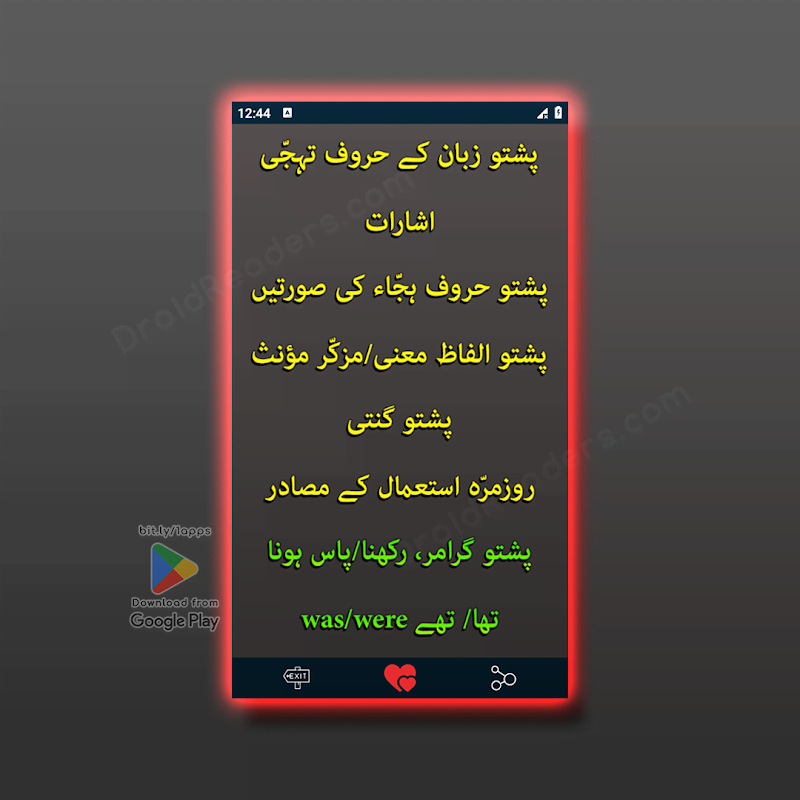 Pashto, ook bekend als Dari, is de moedertaal van het Pashtun-volk en is een van de twee officiële talen van Afghanistan. Als je Pashtoe wilt leren voor zaken, reizen en communiceren met Pashtun-mensen, kun je op een eenvoudige en effectieve manier een Android-app gebruiken. De app Leer Pashto met de Urdu-app biedt Pashto-lessen en -oefeningen op een interactieve manier via Urdu, zodat leerlingen Pashto snel en gemakkelijk onder de knie krijgen.