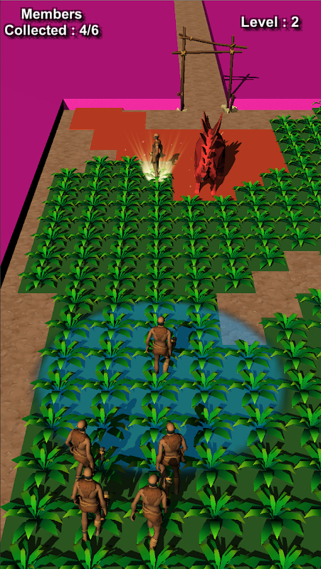Move around by pressing the edge of the circle, plant crops, build huts, avoid dinos, collect tribe members.