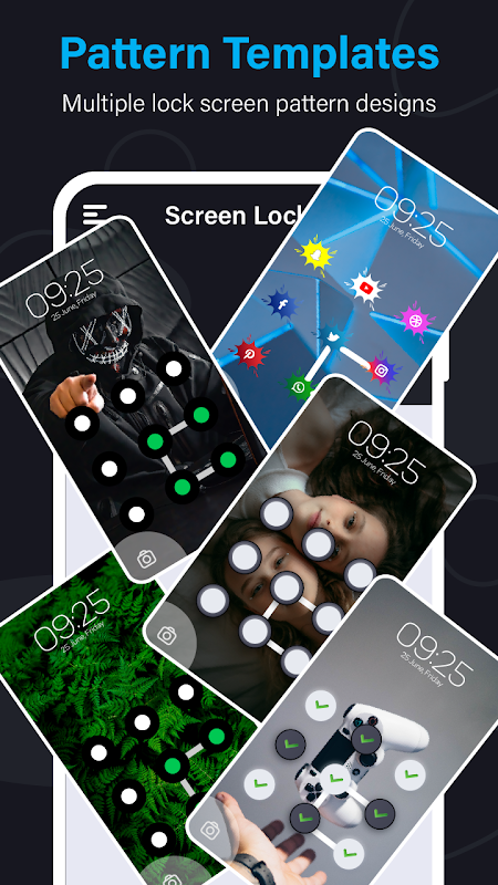 Er zijn veel manieren om schermpatronen te ontgrendelen. Er zijn veel schermvergrendelingsthema's en lockerontwerpen die werken als dia's om te ontgrendelen of een lange-drukmethode gebruiken of uw favoriete patroon op het scherm tekenen. Verhoog de beveiliging van uw telefoon en beveilig uw privégegevens met een sterk wachtwoord voor het mobiele scherm. Kies uw favoriete vergrendelingspatroonthema en stel het in als uw wachtwoord om uw telefoon te vergrendelen en uw telefoon te beveiligen tegen onbevoegde personen.