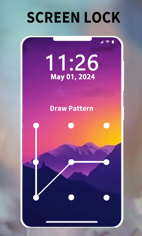 Patroonvergrendeling is sneller te ontgrendelen. Patroonachtergronden voor vergrendelschermen zijn full hd, wat u het meest vloeiende en mooie effect geeft. U hoeft apps niet één voor één te vergrendelen, maar vergrendel het scherm onmiddellijk met de nieuwste patroonvergrendeling. Houd uw gegevens veilig met behulp van gratis vergrendelschermpatronen.