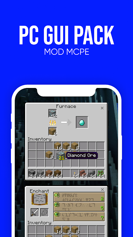 Mods and addons, such as Java Edition mod for Minecraft Pocket Edition, can always be complemented with our other PC Gui craft additions that will bring textures and shaders to world to make graphic component much better and more enjoyable. The PC Gui Pack for Minecraft PE makes the chat screen, chests and spectator block the same as on PC version, so that version is not far behind PC one.