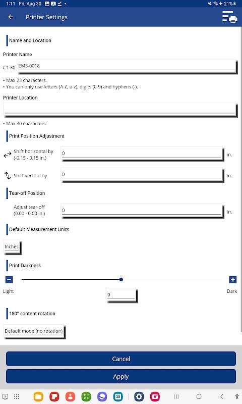 App voor installatie en onderhoud van PDC Certis® C1-30-printers.