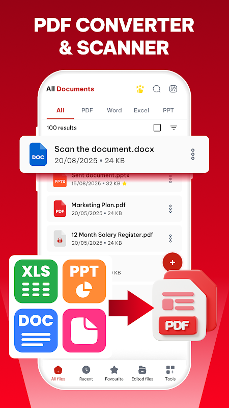 Transformeer uw afbeeldingen of documenten met de veelzijdige PDF Converter-functie, cruciaal voor het digitaliseren van fysieke bestanden of het maken van gemakkelijk te delen documenten. Met All Documents Reader: PDF Reader is het converteren van afbeeldingen naar PDF of zelfs het exporteren van bewerkte documenten nog nooit zo efficiënt geweest.