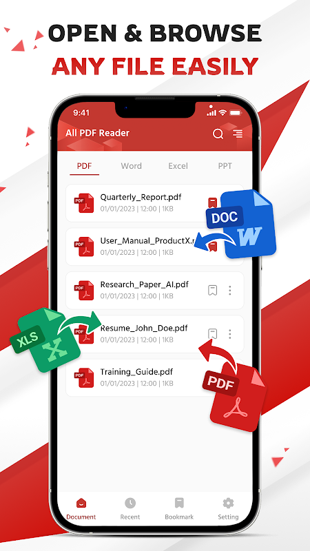 PDF Reader: Word, Excel en PPT zijn eenvoudige en efficiënte tools om documenten op je telefoon te bekijken, beheren en ordenen. Of je nu pdf's opent, Office-bestanden leest of je bestandsbibliotheek beheert, het gebeurt allemaal op één plek.