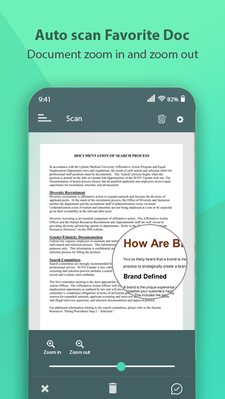 4). Auto-zoom - You don’t need to zoom in / zoom out. It’s easy to scan far away or with a small Doc Scan and free photo scanner.