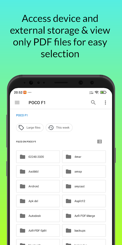 -Selecteer een PDF-bestand om te splitsen. Toont alle pdf-bestanden op uw lokale of externe opslag. Selecteer uw gewenste bestand