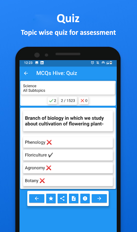 Gebruikers kunnen Quiz proberen om hun kennis over een specifiek onderwerp of subonderwerp van een onderwerp te controleren.