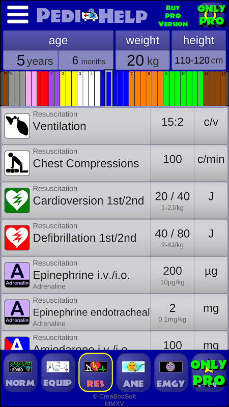 PediHelp is de beste assistent-app voor pediatrische noodsituaties en anesthesie. De verschillende leeftijdsgroepen zijn gemarkeerd met de gebruikelijke kleurcodering. Beweeg je vingers langs de kleur schaal. Alle gegevens worden direct berekend.