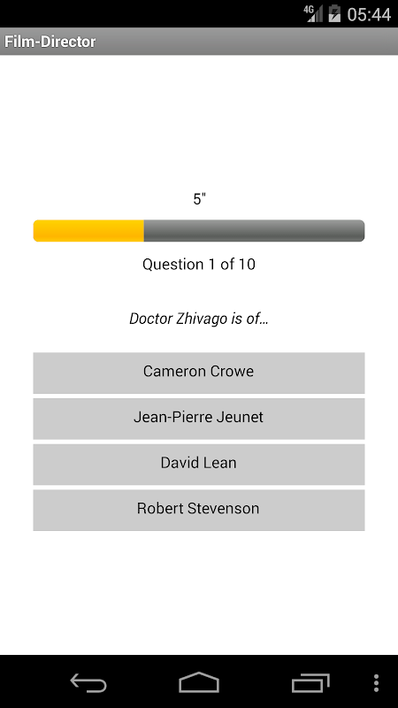 Met Movie Director kunt u uw kennis van de films te testen, de app heeft in zijn OB 100 films met regisseur en vraagt in blok 10-10 geven van 4 opties.