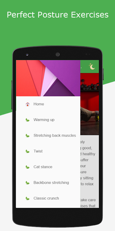 We have decided to help everyone take care of their health. Posture exercises app has list of exercises that will let your back muscles relax and become stronger.