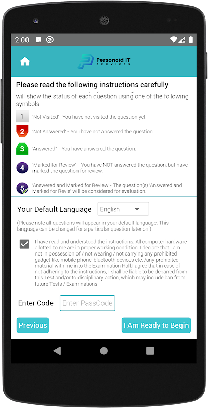 Personoid App is designed to familiarize students with real time examination.