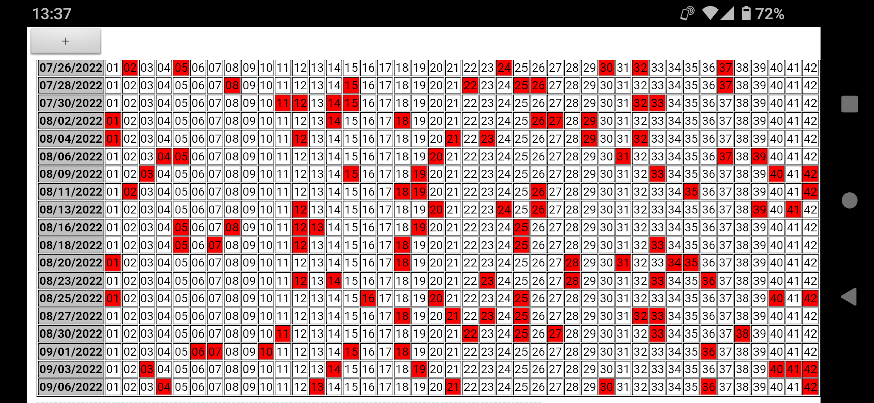 Wanneer u op de analyseknop klikt, kunt u de compatibiliteit van elk geselecteerd getal met andere getallen controleren met dezelfde instellingen als bij het maken van een voorspelling.
