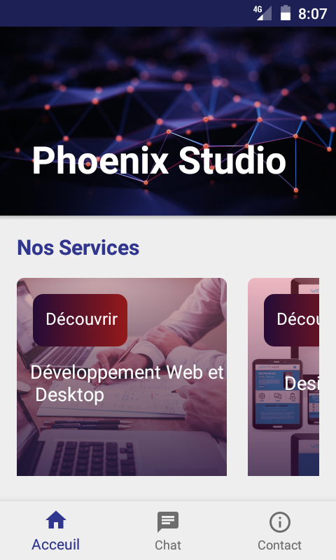 Phoenix Studio biedt de mogelijkheid om de diensten van het bedrijf, contactinformatie maar ook een realtime discussie tussen klanten en onze ingenieurs te presenteren.