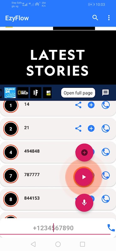 Ezyflow telefooncontacten back-up met alleen telefoonnummer