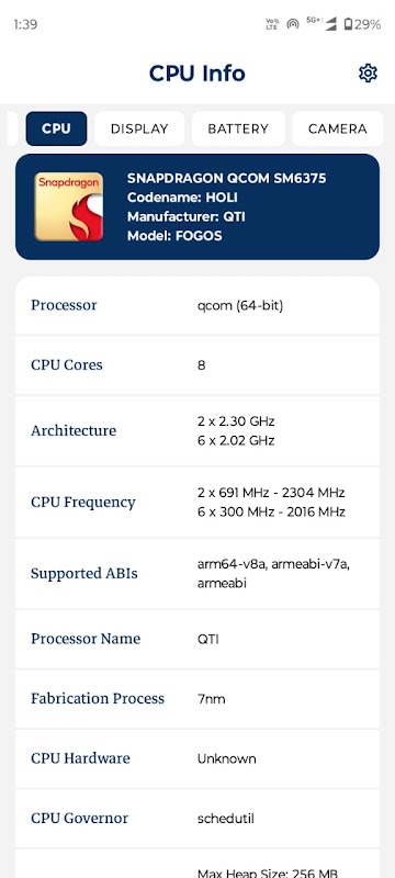 Telefooninfo en hardwarespecificaties - Apparaathardware en systeeminfo