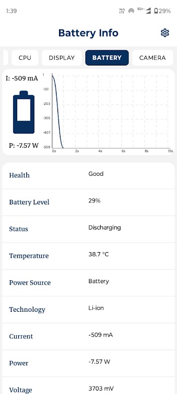 🔋 Batterijstatus en -status: controleer het batterijniveau, de temperatuur, de spanning, de batterijcapaciteit (mAh), de oplaadsnelheid, het energieverbruik en de algehele gezondheid.