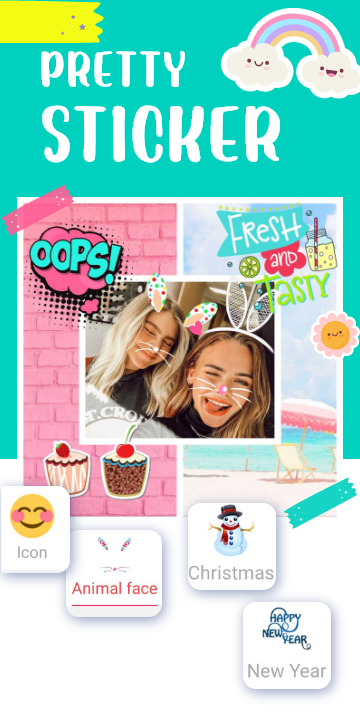 - De app Gratis fotocollage maker kan unieke stickers toevoegen om de foto levendiger te maken