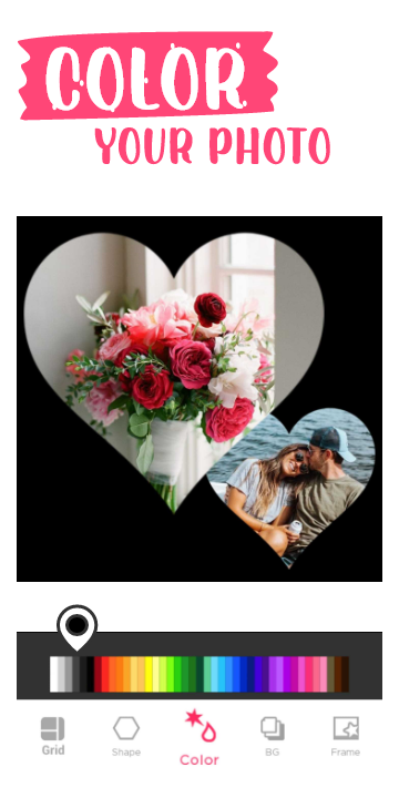 "Fotocollage - Pic Frame Maker - Fotocollage" heeft veel fotolijsten met kleurrijke achtergronden waarmee gebruikers de achtergrond van de collage op een andere en unieke manier kunnen maken. De foto wordt gemaakt met een professionelere en opvallendere uitstraling.